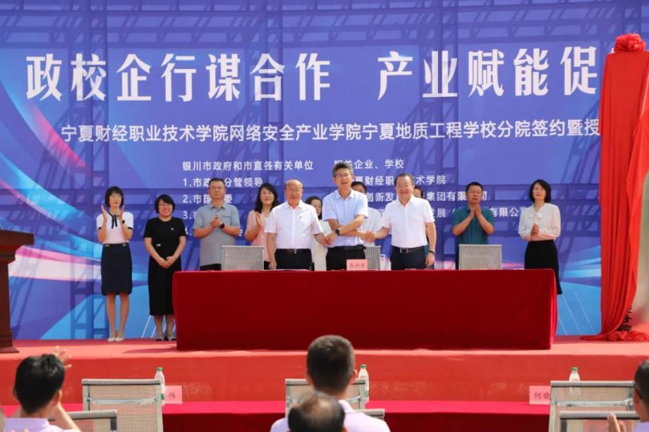為深入貫徹習(xí)近平總書記關(guān)于職業(yè)教育的重要指示批示精神,助推集團(tuán)在產(chǎn)業(yè)發(fā)展、專業(yè)建設(shè)、人才培養(yǎng)、技術(shù)提升等領(lǐng)域取得新成效,為銀川市“算力之都”建設(shè)提供人才支撐。由寧夏財(cái)經(jīng)職業(yè)技術(shù)學(xué)院、蘇銀產(chǎn)業(yè)園管委會(huì)和銀川創(chuàng)投集團(tuán)共建的寧夏財(cái)經(jīng)職業(yè)技術(shù)學(xué)院網(wǎng)絡(luò)安全產(chǎn)業(yè)學(xué)院寧夏地質(zhì)工程學(xué)校分院簽約暨揭牌儀式7月6日上午在寧夏地質(zhì)工程學(xué)校舉行。